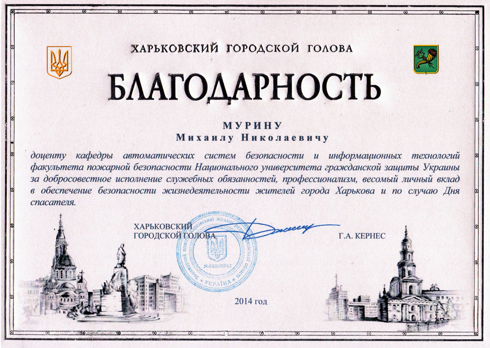 - Національний університет цивільного захисту України, свідоцтво про підвищення кваліфікації по програмі «Фахівців у сфері наглядово-профілактичної діяльності» 12СПВ №072639 АА 08571363/000523-17, від 15.02.2017.